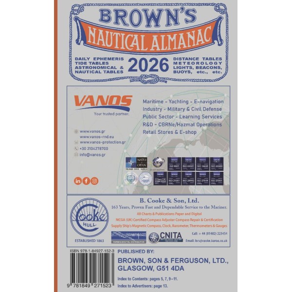 Daily Ephemeris, Tide Tables, Astronomical & Nautical Tables, Distance Tables, Meteorology, Lights, Beacons, Buoys, e.t.c