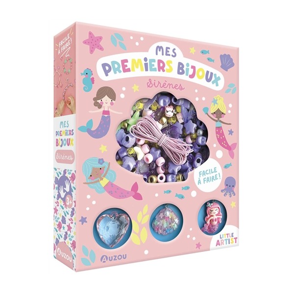 Le matériel et des explications pour réaliser des bijoux sur le thème des sirènes avec des perles fantaisie de couleurs et de formes différentes.