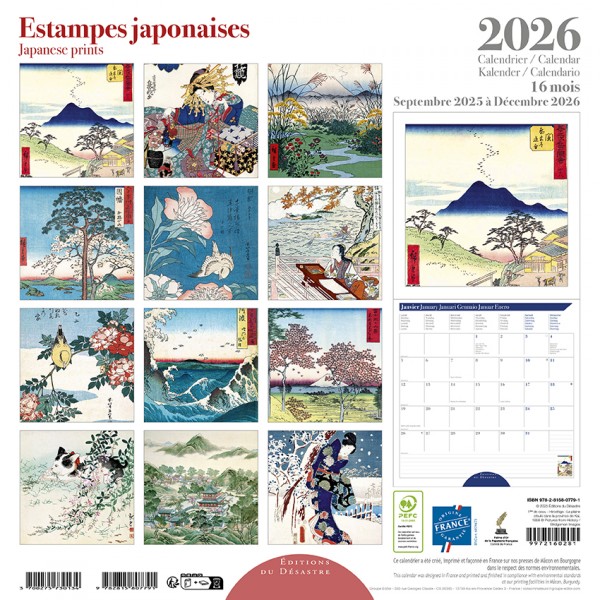 Calendrier 2026 Estampes Japonaises de Septembre 2025 à Décembre 2026