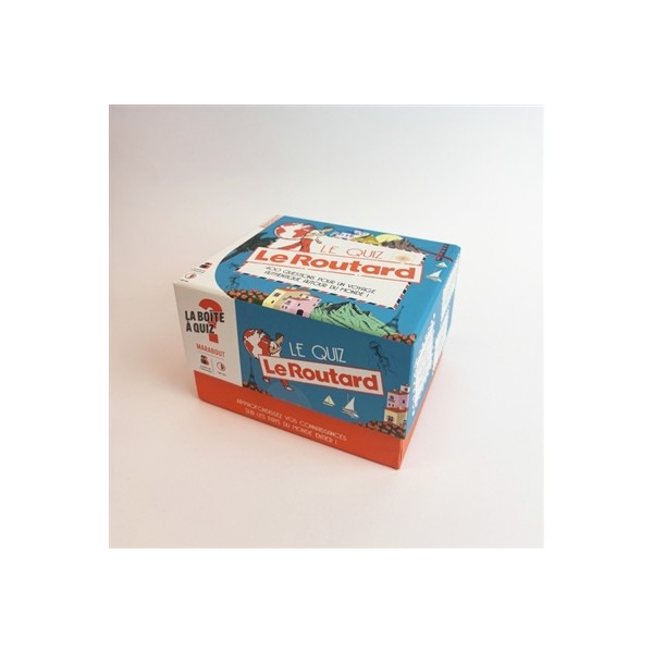 Répondez au quiz Le Routard entre amis ou en famille, pour voyager depuis chez vous et accroître vos savoirs ! La boîte contient 130 cartes, des QCM et des "vrai ou faux ?" avec cinq grandes catégories de questions : achats, excursions, visites culturelles, nuit chez l'habitant, et transports ! Exemple de questions : « Votre guide islandais vous propose d'aller admirer le Strokkur...